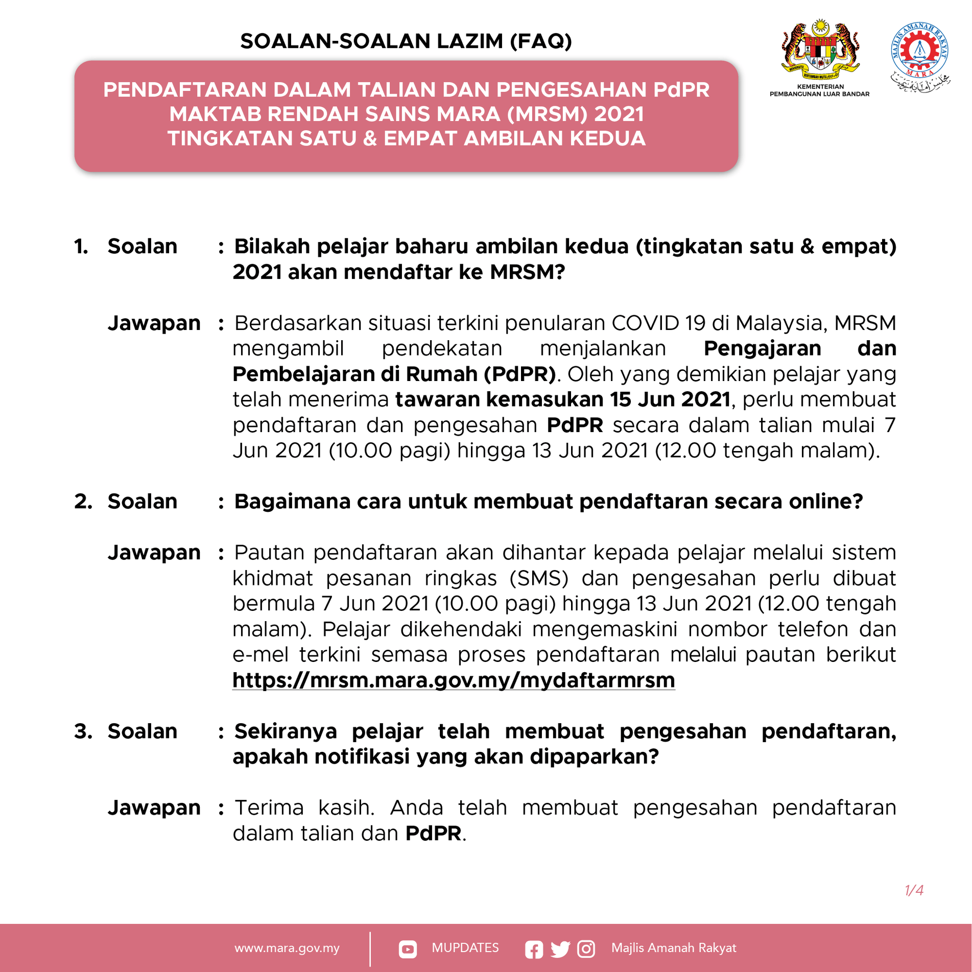 Pendaftaran Dalam Talian Pengesahan Pdpr Mrsm 2021 Tingkatan 1 4 Ambilan Kedua Majlis Amanah Rakyat