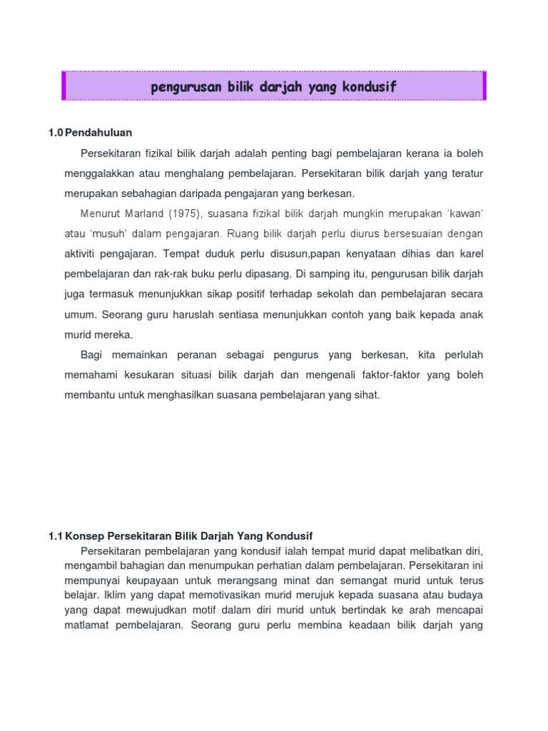 Berryviolet-miszaza pengurusan bilik darjah kondusif. O maior site social de leitura e publicao do mundo. Tempat duduk perlu disusun papan kenyataan dihias dan karel pembelajaran dan rak-rak buku perlu dipasang. Justeru itu persekitaran bilik darjah yang kondusif dapat menghasilkan pengurusan bilik darjah yang.