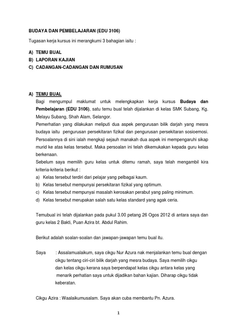 Kerja Kursus Budaya Dan Pembelajaran
